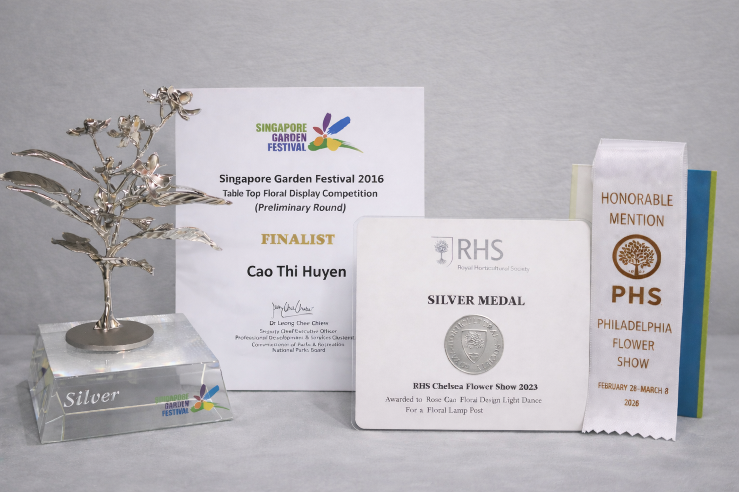 In my search for purpose and how to escape that routine. I discovered floral design in 2014. I took a professional floral design course from one of the best schools in Asia and in 2016 to reduce stress and have a more balanced life. I ended up making history as the first Vietnamese floral artist earning a Silver Medal in the Singapore Garden Festival. For the first time, I found myself not only good at doing something but also passionate while doing it.