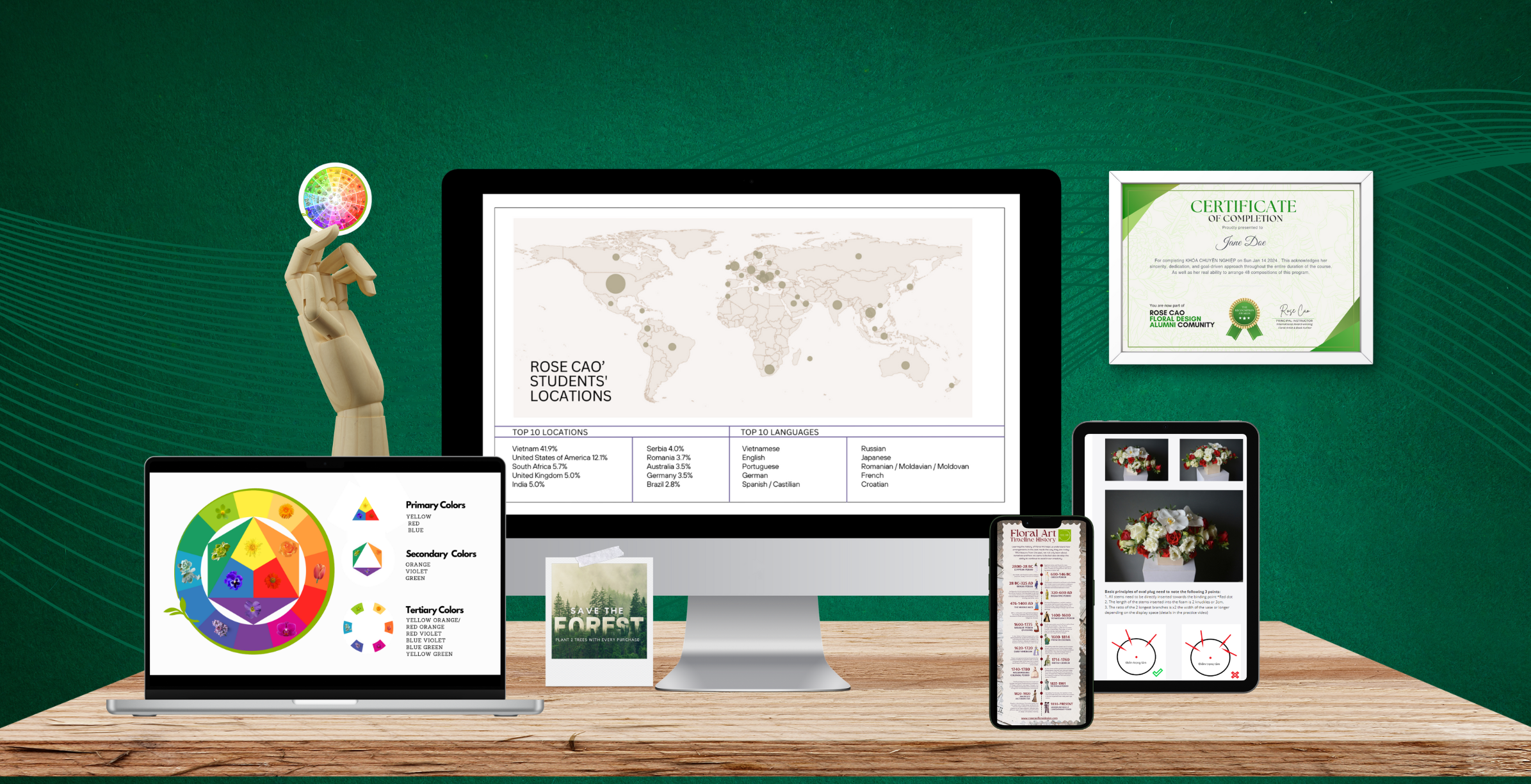 Since 2017, I partnered with the world largest online learning platforms before further expansion to build my own floristry education platform. Now, I offer diverse courses, bridging theoretical knowledge with practical modules & direct coaching. My goal is to make learning more affordable and more accessible to global community of flower lovers.