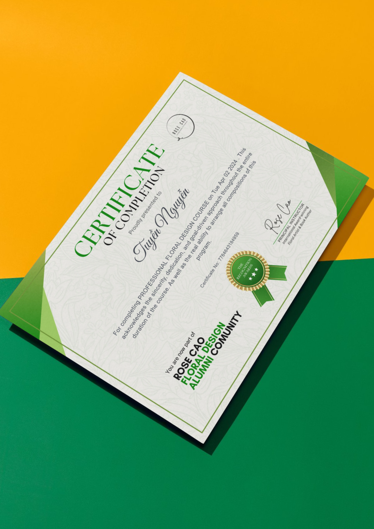 Chứng chỉ RCFD tập trung vào các kỹ năng thực hành, chỉ được trao sau khi được người hướng dẫn phê duyệt các bài cắm thực hành. Điều này đảm bảo chứng nhận chất lượng cao, đáng tin cậy, thể hiện cam kết về các tiêu chuẩn khóa học dành cho thế hệ người cắm hoa tiếp theo. - Tôi có cần kiến thức nào trước để tham gia các khóa học RCFD không?