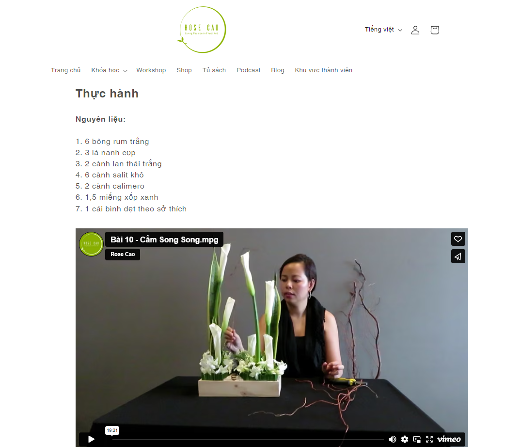 - Khóa Cơ Bản giúp bạn làm quen với kỹ thuật cắm hoa cơ bản và xây dựng nền tảng vững chắc.