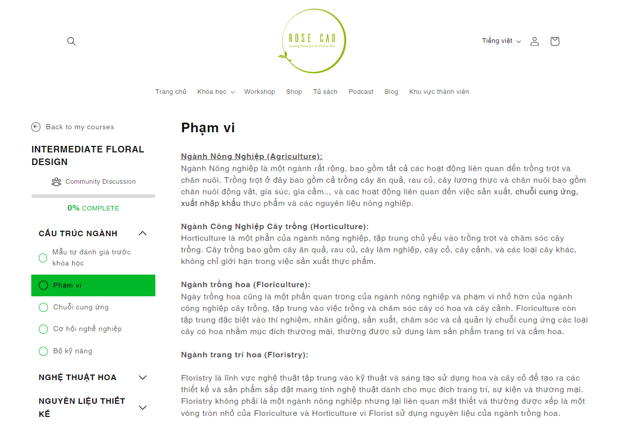 Khóa học Cắm Hoa Trung Cấp của Rose Cao Floral Design là lựa chọn lý tưởng cho những ai đã hoàn thành khóa học cơ bản và mong muốn phát triển kỹ năng thiết kế hoa của mình lên một mức cao hơn. Đặc biệt, khóa học này rất phù hợp với những bạn muốn kinh doanh hoặc sáng tạo các sản phẩm hoa cho các sự kiện, ngày lễ, tiệc cưới hoặc các dịp đặc biệt. Bạn sẽ khám phá cách sử dụng nguyên liệu và chất liệu đa dạng, tạo ra những tác phẩm hoa đẹp mắt và chuyên nghiệp, có thể mang đi tặng người thân hoặc bán cho khách hàng.
