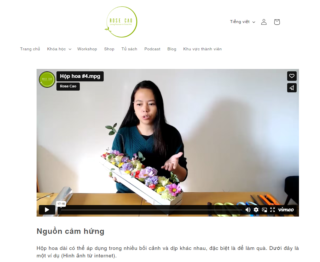 Khóa học này giúp bạn nâng cao sự sáng tạo qua việc áp dụng các chủ đề và ngữ cảnh khác nhau vào thiết kế hoa. Khóa học được dẫn dắt bởi NTK hoa quốc tế Rose Cao.