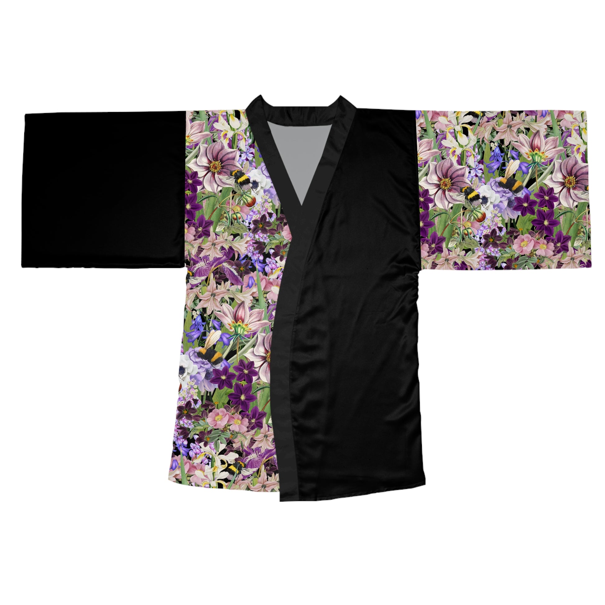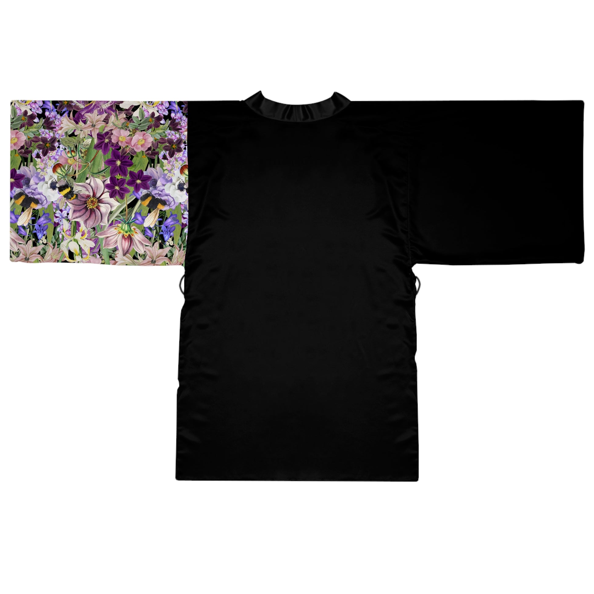 Áo choàng kimono dài tay hoa Iris màu tím (AOP)
