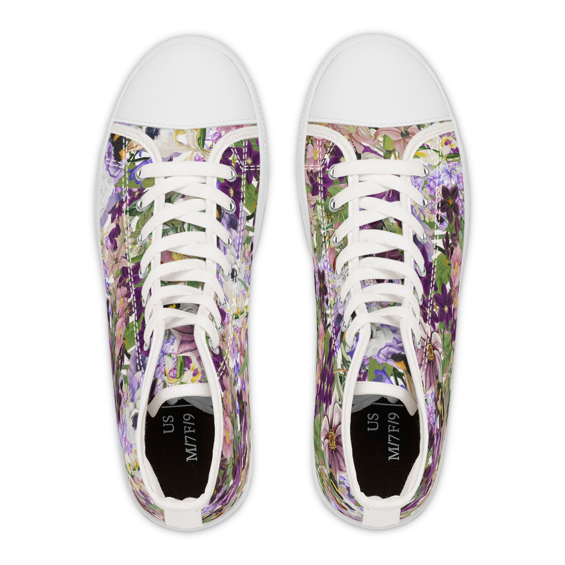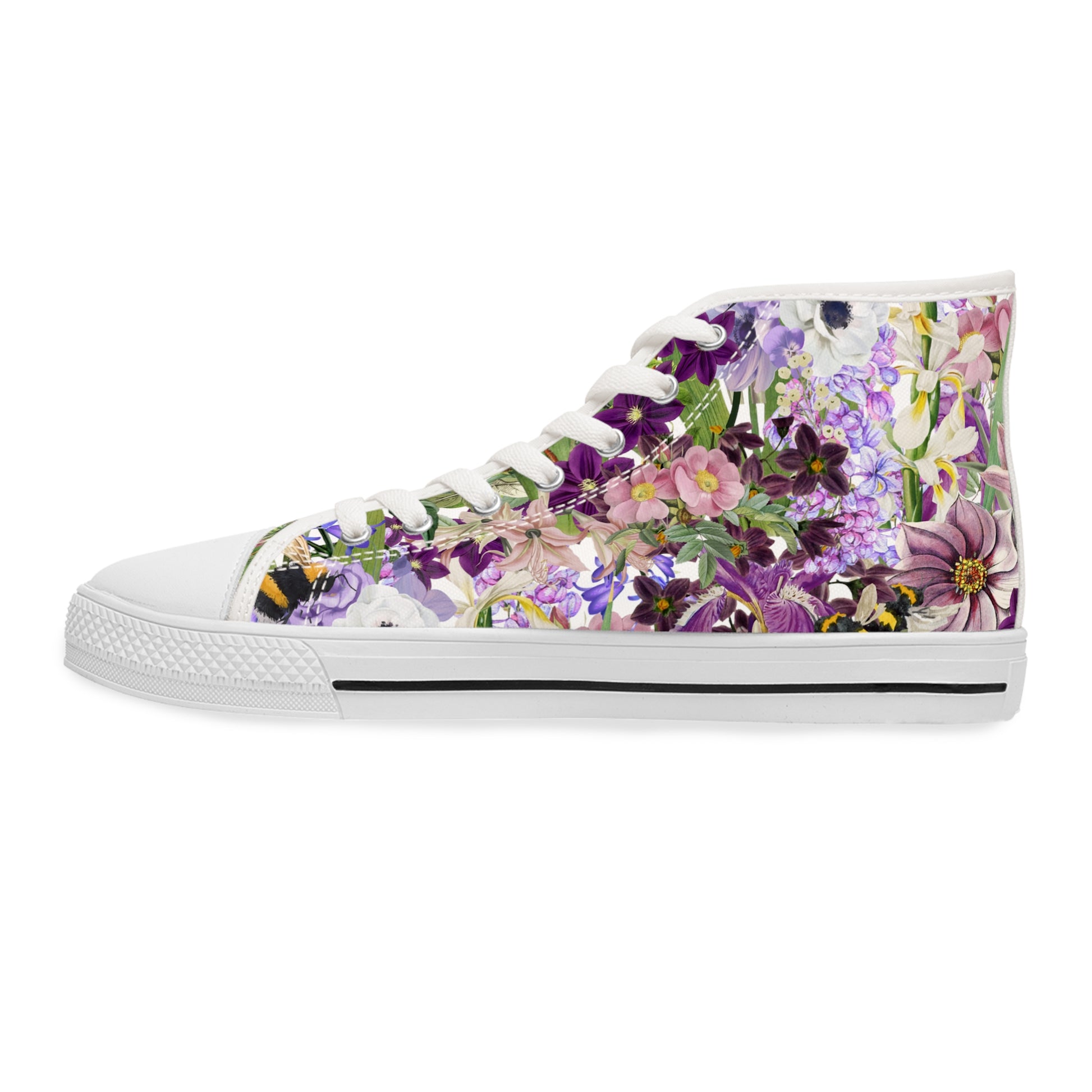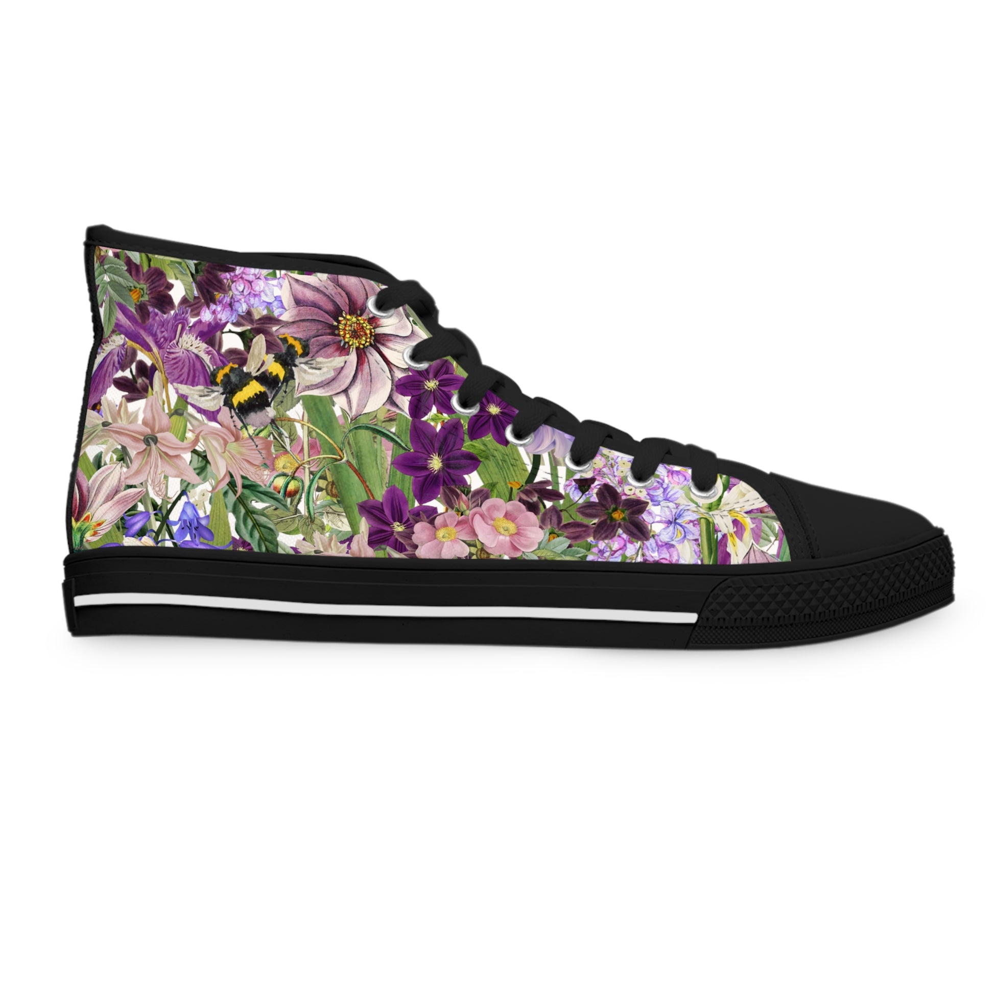 Made with breathable polyester canvas and featuring hi-poly deodorant memory foam insoles, these high top sneakers bear all the marks of an awesome shoe. Choose between black or white sole and laces, and enjoy the silver metal eyelets along with the lace-up closure.
